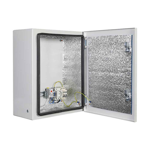 Универсальный монтажный шкаф Mastermann 13УТ (Ver. 2.0) уличного исполнения (защита от пыли и влаги по стандарту IP66, рабочая температура — –55 °C… +50 °C) укомплектован обогревателем мощностью 75 Вт, автоматическим выключателем на 6 А, монтажной платой, двумя замками, двумя гермовводами.