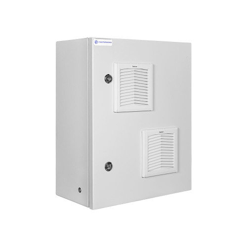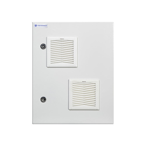 Универсальный монтажный шкаф Mastermann 13УТПВ-П (Ver. 2.0) укомплектован обогревателем мощностью 75 Вт, автоматическим выключателем на 6 А, монтажной платой, двумя замками, двумя гермовводами, двумя вентиляционными решетками, термореле. Предусмотрена защита от холодного пуска.