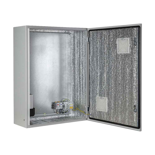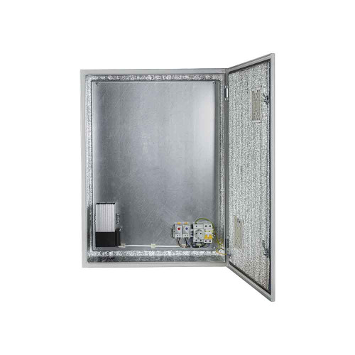 Универсальный монтажный шкаф Mastermann 5УТПВ-А+ (Ver. 2.0) адаптирован к круглогодичной уличной эксплуатации: корпус защищен от пыли и влаги по стандарту IP54, рабочая температура — –55 °C… +50 °C, климатическое исполнение — УХЛ1. Укомплектован пятью гермовводами, двумя замками, двумя вентиляционными решетками, розеткой, обогревателем мощность 250 Вт, вентилятором NTL FF 152. Предусмотрена защита от холодного пуска, КЗ. Размер: снаружи — 600×800×300 мм, внутри — 577×777×270 мм. Вес — 32 кг.