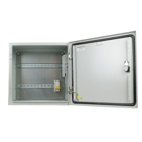 Уличный шкаф Osnovo OSS-441 защищает оборудование от неблагоприятных погодных условий: корпус соответствует стандарту защиты от пыли и влаги IP66, рабочая температура — –50 °C… +50 °C. Укомплектован оптическим кроссом с двумя разъемами SC, автоматическим выключателем, двумя DIN-рейками, десятью гермовводами Ø3.6 мм и одним Ø6.4 мм.