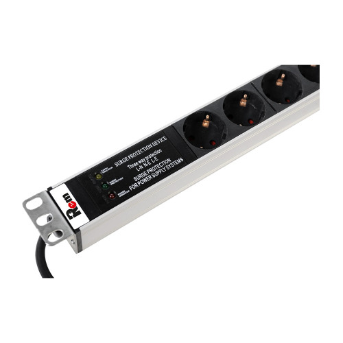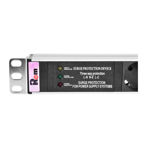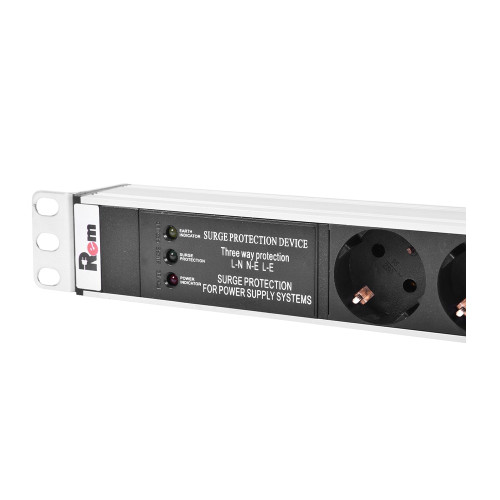 Вертикальный блок розеток Rem R-16-15S-10C13-FI-1820-3 для шкафа высотой 42 ~ 48 U укомплектован выходными пятнадцатью Schuko (наклон 45° для коленчатых штекеров), десятью C13 IEC 60320. Выполнен в системе несущих конструкций 482.6 мм по ГОСТ 28601.2 (19-дюймовые конструктивы по МЭК 297). Поставляется с кабелем длиной 3 м, оконцованным вилкой Schuko.