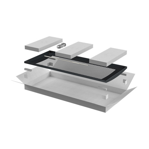 Материал — листовая сталь с порошковым покрытием черного (RAL 9005) цвета. Рабочая температура — –10 °C… +45 °C.