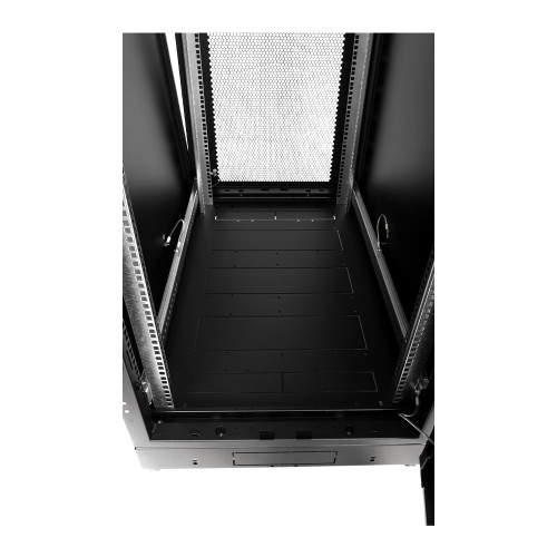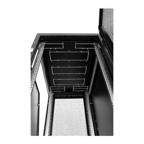 - Юнитовая перфорация в задней части корпуса — для монтажа кабельных органайзеров, шин заземления и проч.