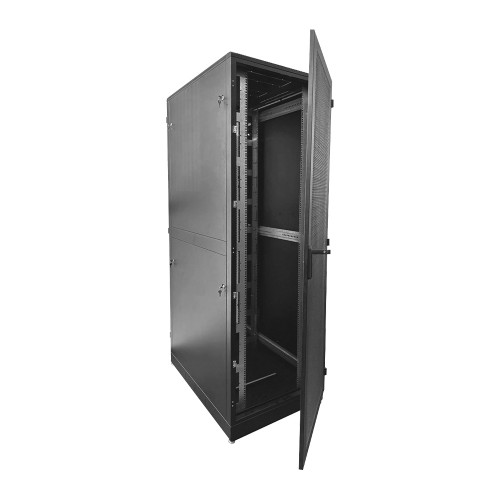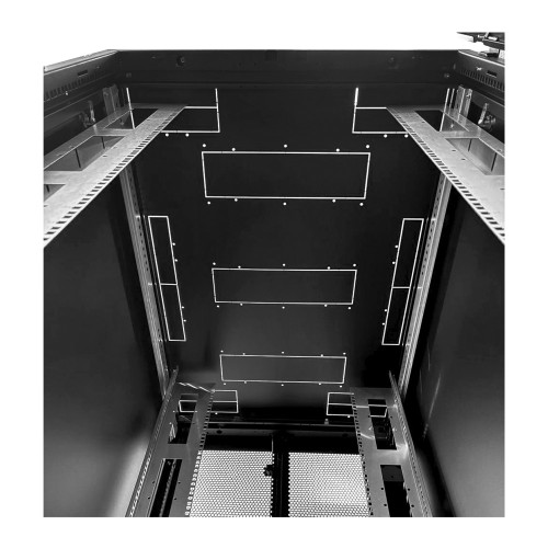 - Юнитовая перфорация в задней части корпуса — для монтажа кабельных органайзеров, шин заземления и проч.