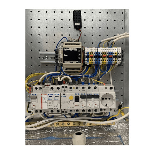 - Электромонтажная панель с установленным на двух DIN-рейках оборудованием.