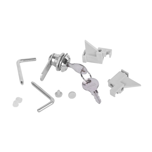 Комплект ЦМО КМД-ШРН-Э для замены вышедших из строя или утерянных элементов фиксации шкафа серии ШРН-Э состоит из точечного замка, двух петель, двух демпферов, двух полиэтиленовых втулок.