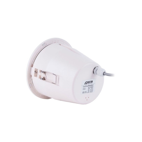 Потолочный звуковой оповещатель Roxton PA-06WPT адаптирован к круглогодичной уличной эксплуатации: защита от пыли и влаги — IP54, рабочая температура — –35 °С… +55 °С.