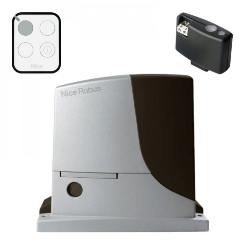 Комплект автоматики Nice RB1000BDKIT для откатной створки весом до 1000 кг, длиной до 12 м включает в себя электромеханический привод RB1000, приемник OXIBD и два пульта ON3EBD.