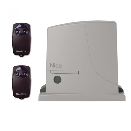 Комплект Nice ROX1000KIT для автоматизации откатной створки шириной до 8 м (оптимально — до 5 м) и весом до 1000 кг включает в себя электромеханический привод ROX1000 и два пульта ДУ FLO2RE.