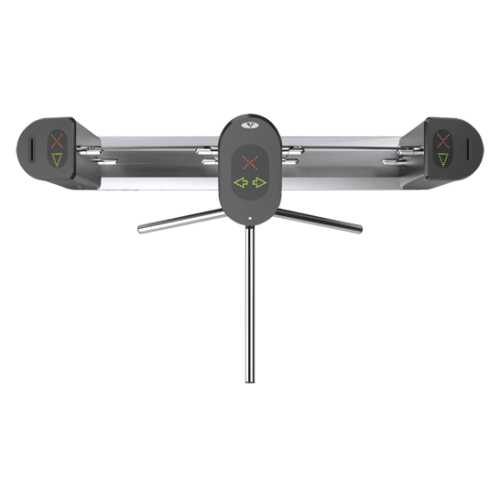 Корпус турникета и преграждающие планки изготовлены из шлифованной нержавеющей стали, элементы ограждения — из закаленного стекла, панели индикации — из искусственного камня с акриловыми вставками. Рабочие температуры — +1 ºС… +40 ºС. Питание — 12 В DC (БП в комплект не входит). Ток потребления в режиме ожидания — 0.3 А, прохода — 1.5 А, максимальный — 5.0 А. Размер с планками в преграждающем положении — 1200×1506×860 мм, со сложенными — 1200×1506×345 мм. Вес — 132 кг.