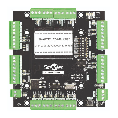 Модуль расширения Smartec ST-NB441DR2 для контроллера СКУД ST-NC441R2 рассчитан на четыре двери или два турникета, четыре считывателя. Оборудован восемью входами, четырьмя выходами с нормально открытыми и нормально закрытыми контактами, портами Wiegand, RS-485. Питание — DC 12 V, потребляемый ток — 300 мА. Размер — 100×95×21 мм. Рабочая температура — 0 °С… +55 °С, влажность — 10 % ~ 80 %.
