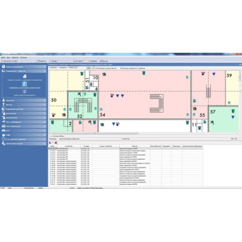 В разделе оператор получает информацию о состоянии устройств системы безопасности и в случае нестандартной или экстренной ситуации может оперативно реагировать, управляя устройствами в ручном режиме. Информацию составляют события, отображаемые изменением пиктограмм на графической схеме помещений и внесенные в журнал мониторинга.