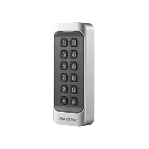 Считыватель Hikvision DS-K1107AMK формата Mifare укомплектован 12-клавишной клавиатурой. Рассчитан на уличную эксплуатацию в любое время года: корпус защищен от пыли и влаги по стандарту IP65, рабочая температура — –40 °С… +65 °С. Построен на 32-битном процессоре.