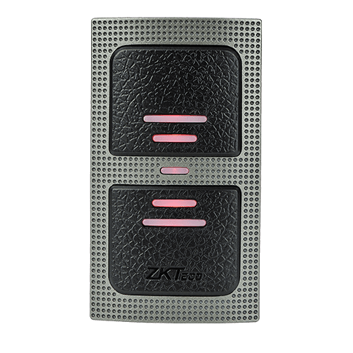 Считыватель карт ZKTeco KR503E адаптирован к работе на улице вне зависимости от времени года: защита корпуса от пыли и влаги соответствует стандарту IP65, рабочие температуры — –20 °C… +65 °C. Поддерживает протоколы связи RS-485 и Wiegand.