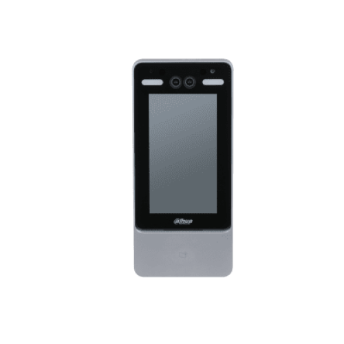 Терминал доступа Dahua DHI-ASI7214Y-V3 с распознаванием лиц и отпечатков пальцев оборудован двойной широкоугольной камерой с матрицей CMOS, разрешением 2 Мп, ИК-подсветкой; емкостным сканером отпечатков пальцев; IPS-дисплеем с диагональю 7", разрешением 1024×600 пикселей.
