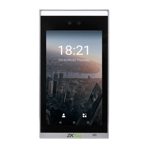 Биометрический терминал доступа и учета рабочего времени ZKTeco FaceDepot-7B укомплектован двумя динамиками, сканером отпечатка пальца, сенсорным дисплеем с диагональю 7", двойной камерой 2 Мп.