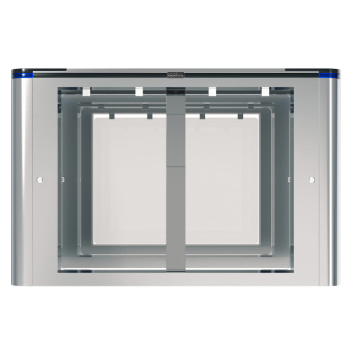 Корпус турникета изготовлен из нержавеющей стали AISI 304, в качестве материала створок принято закаленное стекло. Диапазон рабочих температур — -25 ºС… +60 ºС. Рабочее напряжение — 24 В, напряжение индикатора и устройства откидывания створок — 12 В. Энергопотребление — 40 Вт. Размер — 1500×150×980 мм. Вес нетто — 82 кг.
