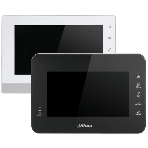 Внутренний абонентский монитор Dahua DH-VTH1560BW построен на микропроцессоре, ОС Linux. Оборудован цветным сенсорным LCD-дисплеем емкостного типа с диагональю 7", разрешением 800×480, сенсорными кнопками, всенаправленным микрофоном и встроенным динамиком.