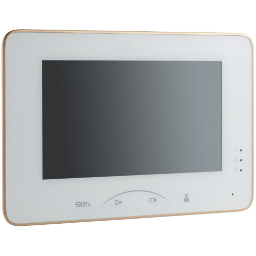 IP-монитор HikVision DS-KH8300-T построен на базе ОС Linux и оборудован сенсорным 7" экраном с разрешением 1024х600 точек. Для быстрого управления панелью имеется блок сенсорных клавиш. Устройство обеспечивает прием/отправку текстовых сообщений, видео (только прием) и аудиовызовов (встроенные динамики и микрофон с шумо- и эхоподавлением) на IP вызывные панели, IP-мониторы других абонентов системы или пульт консьержа, поддерживаются удаленное управление дверью, запись вызовов и функция автоответчик. Домофония на базе оборудования HikVision допускает подключение до 16 обычных IP-камер видеонаблюдения с возможностью их просмотра и видео с камер вызывных панелей на IP-мониторе. Имеются слот для установки карт памяти стандарта SD и тревожные входы/выходы (8/2). Питание производится от стандартного БП 12В или по технологии PoE (с использованием коммутаторов HikVision DS-KAD606 и DS-KAD612). Поддерживаются сетевые протоколы TCP/IP, SNMP, RTSP.