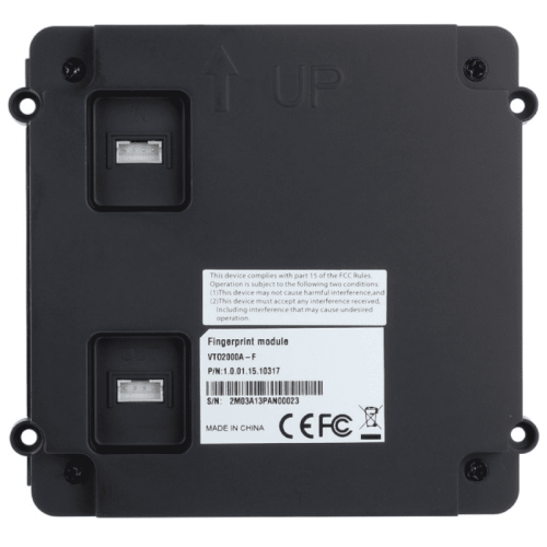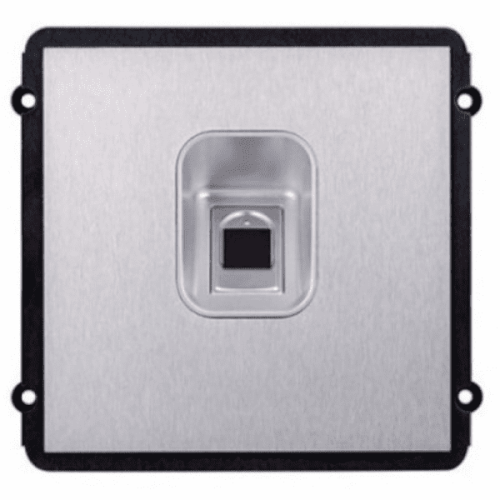 Биометрический модуль Dahua DH-VTO2000A-F сборной вызывной панели серии VTO2000A-X (не более 9 модулей, в т.ч. DH-VTO2000A-C) поддерживает открытие замка отпечатком пальца, для чего оборудован считывателем отпечатков.