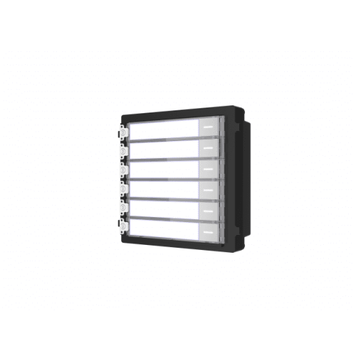 Модуль Hikvision DS-KD-KK для расширения количества абонентов сборной вызывной панели Hikvision серии KD8 Pro на шесть пользователей оснащен шестью механическими кнопками вызова с подсветкой. Построен на основе микропроцессора. Стабильно работает на улице в температурном диапазоне -40 °C… +60 °C, защита от пыли и влаги соответствует стандарту IP65. Получает питание от модуля DS-KD8003-IME1 и передает его на другой модуль через вход и выход питания. Энергопотребление — не более 2 Вт. Возможна врезная или накладная установка (нужен монтажный кронштейн). Размер — 98.21×100.21×33.7 мм.