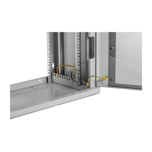 Корпус выполнен из предварительно фосфатированной стали, окрашенной светло-серой (RAL 7035) порошковой шагреневой полимерной краской. В комплект входит пара перфорированных юнитовых направляющих, выполненных из оцинкованной стали. Размер — 479×599×359 мм, вес — 12 кг. Рабочие температуры — +1 °C… +45 °C, влажность — до 80 %.