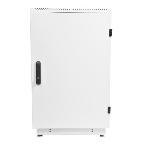 Рабочие условия: температура — +5 °C… +40 °C, допустимая влажность — 80 % при 20 °C. Климатическое исполнение — УХЛ 4.2 по ГОСТ 15150. Поставляется с винтовыми опорами, компенсирующими неровности пола. Листовые детали покрыты полимерной шагреневой порошковой краской светло-серого (RAL 7035) цвета, направляющие оцинкованы. Габариты шкафа — 600×600×960 мм, вес — 48.6 кг.