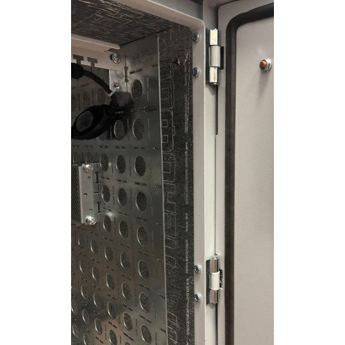 Шкаф поставляется в сборе, укомплектован двумя юнитовыми панелями. В основании предусмотрено отверстие с заглушкой и пенорезиновым уплотнителем — для ввода кабелей. Листовые детали покрыты порошковой краской светло-серого (RAL 7035) цвета. Монтаж — на стену или столб. Можно ставить на ровную горизонтальную поверхность. Крепежные элементы для установки на столб в комплектацию не включены. Габариты шкафа — 620×330×800 мм, вес — 50 кг.