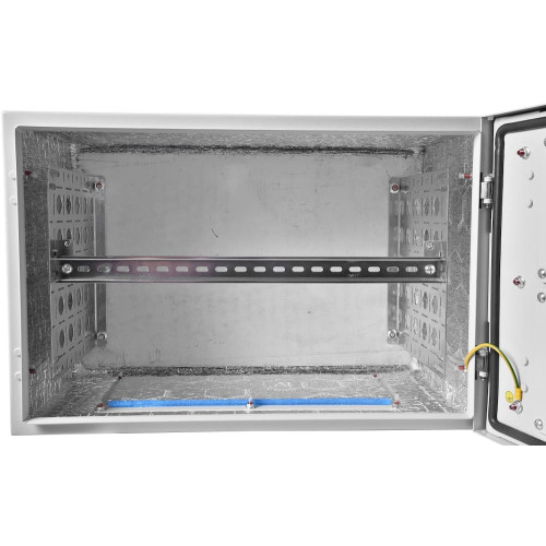Навесной телекоммуникационный шкаф ЦМО ШТВ-Н-15.6.3-4ААА отвечает требованиям ГОСТ 28601-90 (МЭК 297) для конструкций типоразмера 19". Адаптирован к уличной эксплуатации в любое время года: термоизоляционный фольгированный материал поддерживает температурный режим, климатическое исполнение — У1 по ГОСТ 15150, интервал рабочих температур — –50 °C… +45 °C, допустимая влажность — 80 % при 20 °C, степень защиты без вентиляции — IP65, с вентиляцией — IP54. Дверь подготовлена к установке вентиляционного фильтра и вентиляторного модуля — предусмотрены отверстия и заглушенные ниши с пенорезиновым уплотнителем. Шкаф поставляется в сборе, с задней оцинкованной панелью, двумя вертикальными юнитовыми панелями, DIN-рейкой для размещения электротехнического оборудования, реле и датчиков.