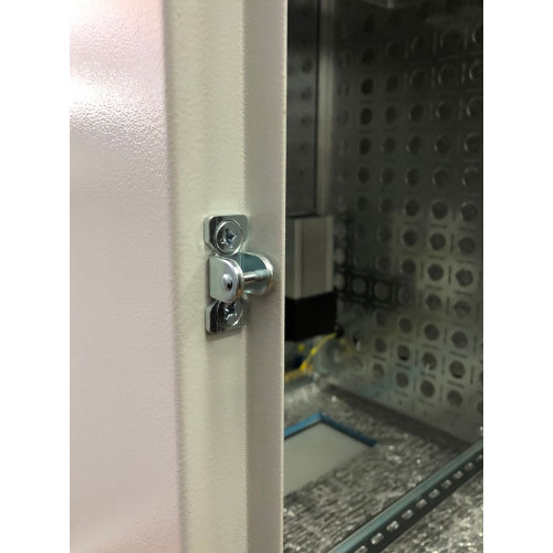 В основании предусмотрено отверстие с заглушкой и пенорезиновым уплотнителем — для ввода кабеля. Листовые детали покрыты порошковой краской светло-серого (RAL 7035) цвета. Шкаф разработан для навесного монтажа на стену или столб, но его можно ставить на ровную горизонтальную поверхность. Крепежные элементы не входят в комплект (за исключением уголков для настенной установки). Габариты шкафа — 620×330×450 мм, вес — 33 кг.