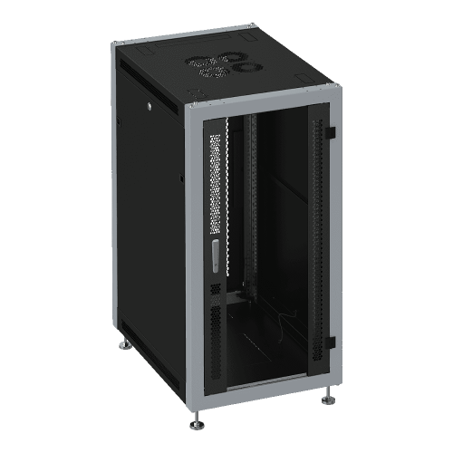• Две (передняя стеклянная и задняя двухстворчатая перфорированная) двери универсальной навески, оборудованные замками с поворотной ручкой.