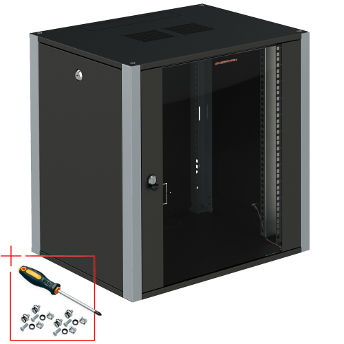 Телекоммуникационный шкаф Sysmatrix WP 6422.910 для эксплуатации в помещении с контролируемыми климатическими условиями при температурах +5 °C… +40 °C, влажности 80 % (относительно 25 °C), давлении 84 ~ 107 кПа (630 ~ 800 мм рт. ст.) отвечает требованиям ГОСТ 32127-2013, ГОСТ 28601.1. Представляет собой сборно-разборную конструкцию. Состав: четыре стойки (две — с монтажными отверстиями для соединения с поворотной секцией), основание, крыша, две боковые стенки, задняя стенка с заглушенным отверстием, стеклянная дверь, два юнитовых монтажных профиля.