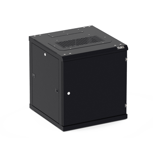 Телекоммуникационный настенный шкаф TLK TWC-096060-R-M-BK сборно-разборной конструкции состоит из основания, крыши, цельнометаллической двери универсальной навески, задней и боковых стенок, четырех вертикальных монтажных направляющих с юнитовой перфорацией (стандарт DIN 41494-7, ГОСТ Р 53246-2008).