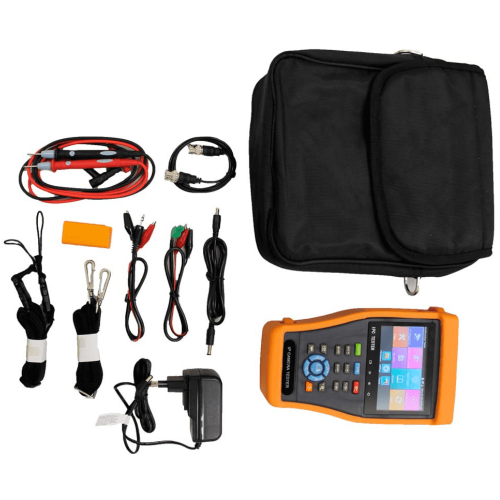TIP-H-M-4.3 (ver.2) оснащен встроенным мультиметром для измерения напряжения DC и AC, сопротивления, емкости диодов, прозвона цепи etc. Укомплектован сенсорным экраном 4.3" с разрешением 960×540, генератором аналогового сигнала, светодиодными индикаторами приема и передачи данных, питания от адаптера, от батареи, LED-фонариком.