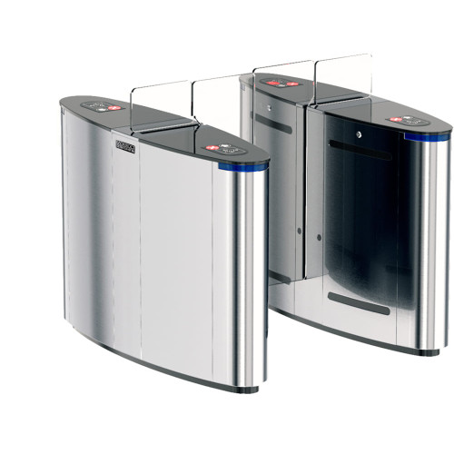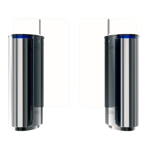 Тумба скоростного турникета Блокпост СКП 600 с выдвигающимися в обе стороны створками шириной 350 мм при обесточивании автоматически втягивает створки, освобождая проход. Поддерживает одно- и двунаправленный проход, открытие створок по карте или сигналу пульта управления. Укомплектована электронными считывателями карт HID и EM-Marin. Ширина зоны прохода между двумя тумбами — от 650 мм.