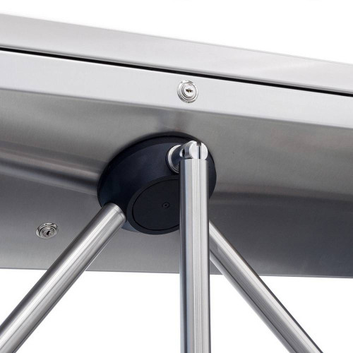 Нормально-закрытый тумбовый турникет-трипод PERCO TTD-03.2S с корпусом и крышкой, выполненными из шлифованной нержавеющей стали, предназначен для работы в помещении, поставляется с электронной платой, поддерживает проход в двух направлениях, механические планки «антипаника»(планки выбирают при заказе).