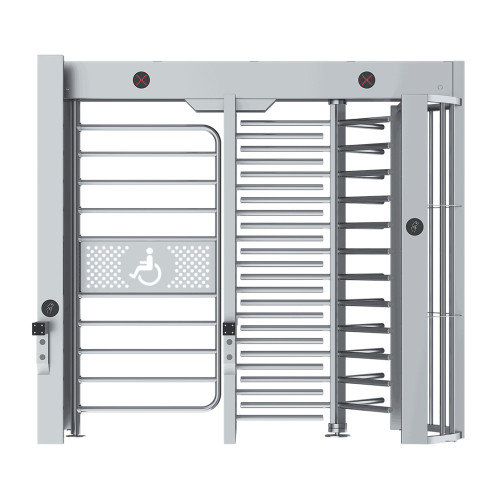 Турникет «Блокпост» СТ4 М серии «Спектр» укомплектован трехлопастным ротором и поворотным валом с полноростовой калиткой — для людей с ограниченными возможностями, велосипедистов, провоза чемоданов etc. Турникеты серии «Спектр» совместимы друг с другом и модулем СТ7 для РТУ — формируют единую многопроходную линию (специальный крепеж) для обеспечения контроля доступа на объектах с высокими требованиями к безопасности.