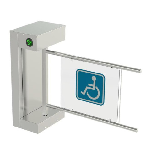Нормально открытый турникет-калитка Came Saloon 705 (001PSSL705EN) оборудован электромотором с сервоприводом (24 В DC), платой управления, створкой из стальной (AISI 304) рамы с информационной вставкой.