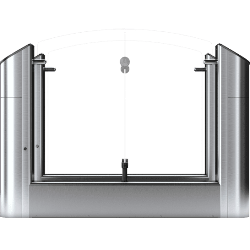 Центральная тумба турникета Oxgard Praktika T-04-CMK-900 с двумя распашными створками шириной 420 мм совместно с двумя тумбами формирует зону прохода шириной 900 мм. При автономном режиме получает управляющие сигналы от универсального пульта, при работе в СКУД — от контроллера. Совместима по сухим контактам.