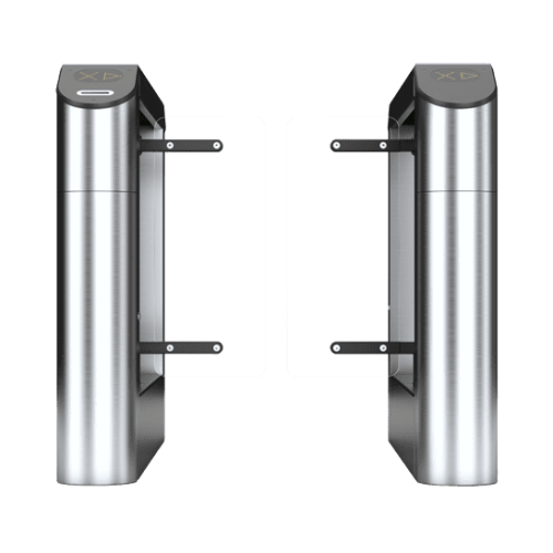 Центральная тумба турникета Oxgard Praktika T-05-CM-900 с двумя моторизованными распашными створками при установке между другими тумбами образует две зоны прохода шириной 900 мм. Работает по команде от универсального пульта или в составе СКУД с подключением контроллера через сухие контакты.