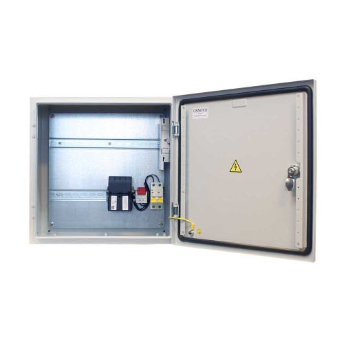 Станция Osnovo OS-44T1 предназначена для защиты электрооборудования, установленного на улице. Состоит из герметичного стального бокса с порошковым покрытием и комплекта дополнительного оборудования, включающего: