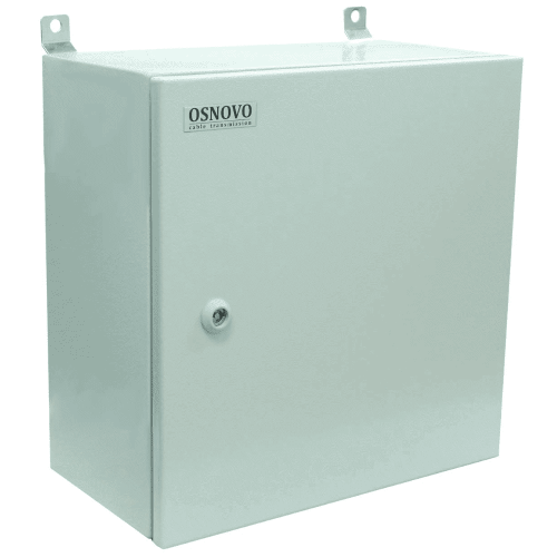 Станция Osnovo OS-44TB1 с оптическим кроссом (легкая коммутация оптико-волоконного кабеля с оборудованием) предназначена для защиты устройств, требующих установки на улице. Включает в себя герметичный бокс и комплект встроенного оборудования: