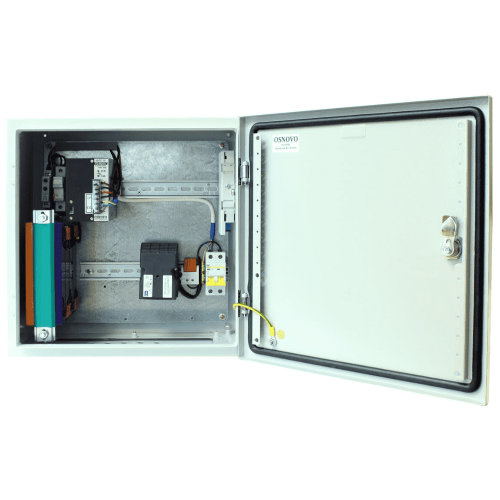 - Система обогрева включает в себя универсальный обогреватель с вентилятором для установки на DIN-рейку и нормально-замкнутый термостат до +15 ºС обеспечивают температуру внутри станции в пределах 0 ºС... +50 ºС.