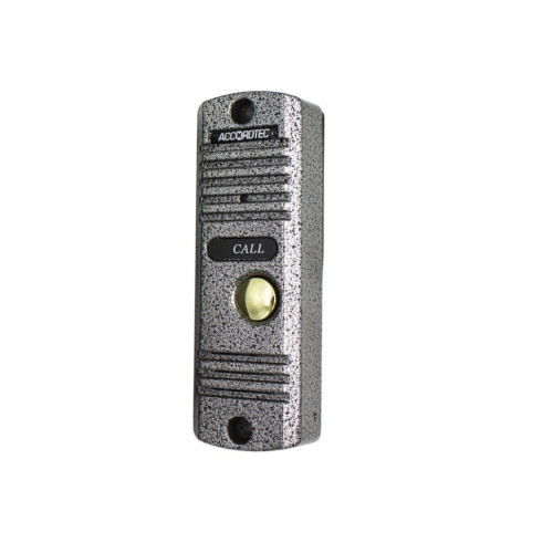 Одноабонентная вызывная панель AccordTec AT-VD305N SL, совместимая с 4-проводными видеодомофонами, укомплектована цветной аналоговой камерой, ИК-подсветкой (дальность 1 м), микрофоном и динамиком.