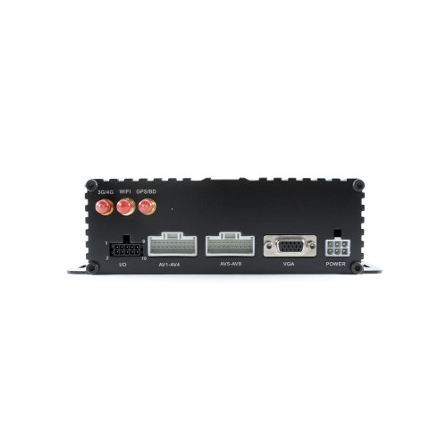 Интерфейсы: USB-порт, четыре входа BNC, выходы BNC и VGA, четыре аудиовхода и аудиовыход (авиационный интерфейс), четыре тревожных входа, тревожный выход, RS-232, выход питания 12 V, RJ-45 (для IP-камеры), ИК-порт, отладочный порт. Питание — DC 8 ~ 36 V. Мощность — 30 Вт. Размер — 162×187×56 мм. Рабочая температура — –40 °C… +70 °C. Предусмотрен обогрев жесткого диска.
