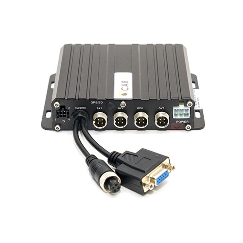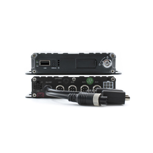 Интерфейсы: USB-порт, четыре входа BNC, выходы BNC и VGA, четыре аудиовхода и аудиовыход (авиационный интерфейс), четыре тревожных входа, тревожный выход, RS-232, выход питания 12 V, RJ-45 (для IP-камеры), ИК-порт, отладочный порт. Питание — DC 8 ~ 36 V. Мощность — 18 Вт. Размер — 118×141×31 мм. Рабочая температура — –40 °C… +70 °C.