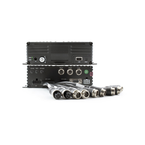 Интерфейсы: USB-порт, четыре входа BNC, выходы BNC и VGA, четыре аудиовхода и аудиовыход (авиационный интерфейс), четыре тревожных входа, тревожный выход, RS-232, выход питания 12 V, два RJ-45 (для IP-камер), ИК-порт, отладочный порт. Питание — DC 8 ~ 36 V. Мощность — 30 Вт. Размер — 162×187×56 мм. Рабочая температура — –40 °C… +70 °C. Предусмотрен обогрев жесткого диска.