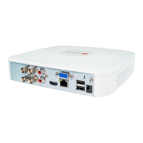 Видеорегистратор поддерживает видеокодеки H.264+/H.264. Интерфейсы: 4×BNC, 1×RJ-45, 1×USB 2.0, 1×USB 3.0, аудио-вход-выход (1/1), 1×SATA для HDD 3.5" емкостью до 6 Тбайт.