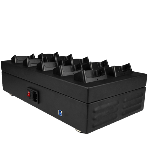 Док-станция TRASSIR Dock-10 рассчитана на 10 персональных видеорегистраторов TRASSIR PVR-100/32G. Предназначена не только для зарядки PVR, но и для передачи данных по интерфейсу USB 3.0 в программное обеспечение TRASSIR для дальнейшей обработки, просмотра etc. Потребляет 120 Вт и отдает на каждый порт ток силой 2 А. Размер док-станции — 370×195×90 мм, вес — 3.7 кг.