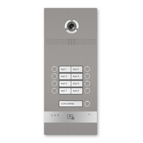 Вызывная панель BAS-IP BI-08FBI Silver рассчитана на восемь абонентов. Адаптирована к круглогодичной уличной эксплуатации: защита от пыли и влаги — IP65, механических воздействий — IK08, рабочая температура — –40 °C… +65 °C.